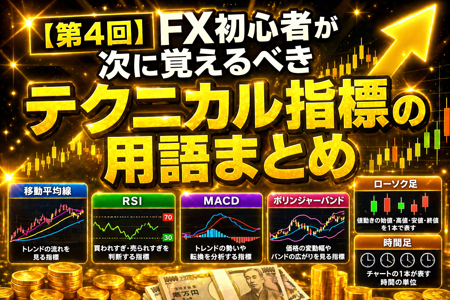 この記事はシリーズ第4回として、FX初心者が次に覚えるべきテクニカル指標の基本用語をまとめます。