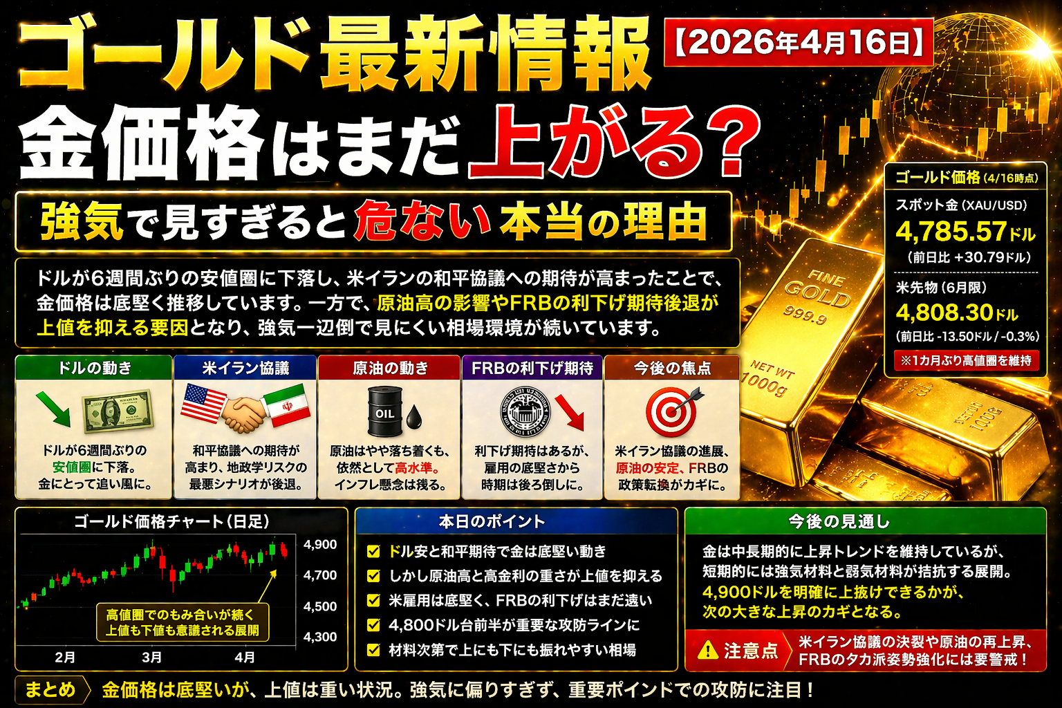 ゴールド最新情報【2026年4月16日】金価格はまだ上がる?強気で見すぎると危ない本当の理由